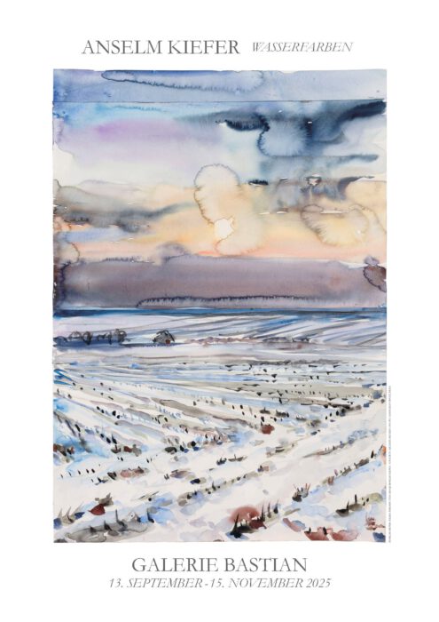 Die Galerie Bastian zeigt Anselm Kiefers Einzelausstellung »Wasserfarben«, die 21 Aquarelle des Künstlers aus mehreren Jahrzehnten umfasst. Kiefers Aquarelle sind der internationalen Öffentlichkeit vor inzwischen 27 Jahren erstmals im New Yorker Metropolitan Museum vorgestellt, in Paris und zuletzt im Nolde Museum Seebüll ausgestellt worden.