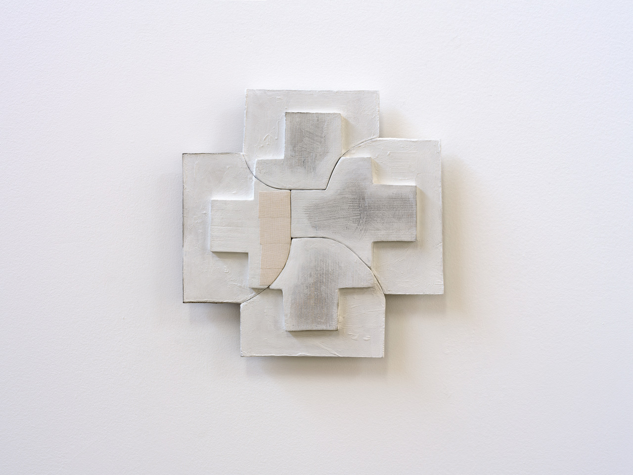 Wallach’s works are primarily composed of simple, heterogeneously connected materials – wood, plaster, glass, or canvas – that enter into dialogue with one another. The artist is interested not in the stable equilibrium of things, but in the delicate balance they find. His sculptures address the relationship between gravity and material, presence and absence, weight and emptiness. The space between the individual structures, the interstitial space or void, becomes a constitutive moment here: an active force that co-shapes the work. Through this deliberate openness, the exhibition space becomes part of the work; the boundaries between work and environment, interior and exterior, become a play unto themselves.